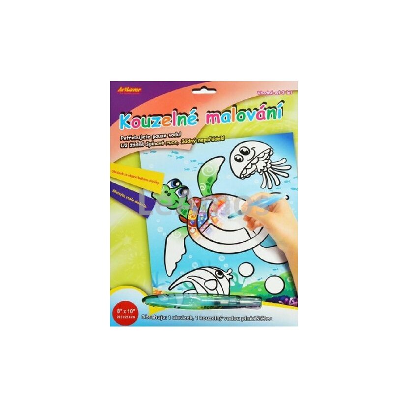 Kouzelné malování "Vodou plnící štětec". Tento štětec pouze naplníte vodou a již můžete malovat obrázek. Díky vodě se vám vybarví. Po zaschnutí obrázek zmizí. Můžete tedy malovat stále dokola. Vhodné pro děti již od 3 let.